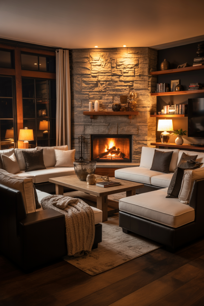 19. Create a Functional Space with a Corner Fireplace
