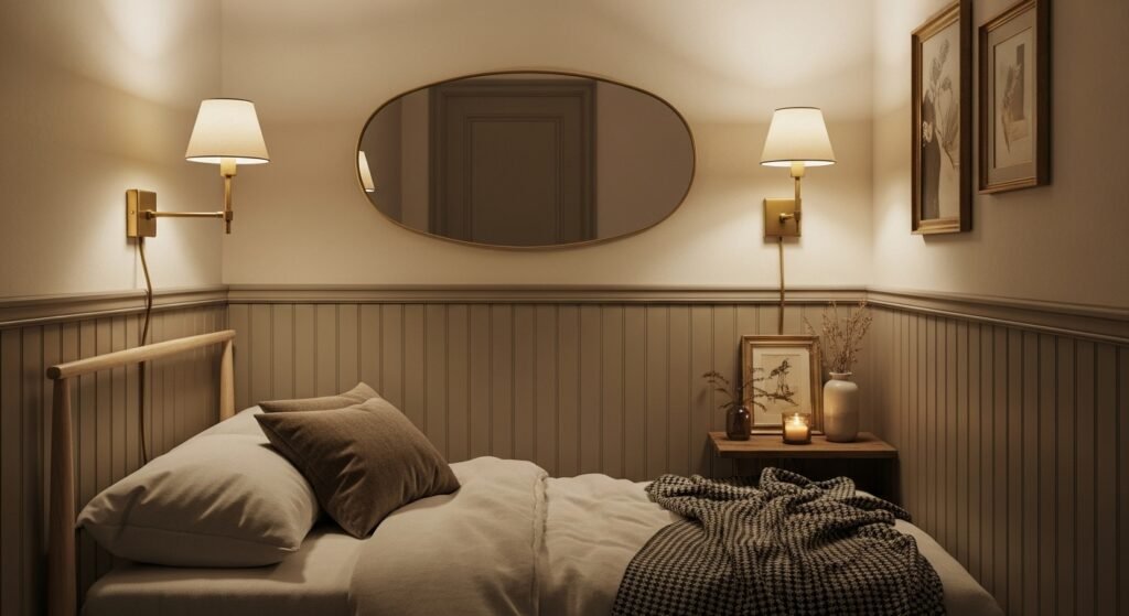 A single overhead light often leaves corners in shadow, making a room feel smaller and more enclosed. To combat this, create a layered lighting scheme using a mix of floor lamps, table lamps, and wall sconces. Lighting up all four corners of a room instantly expands the boundaries of the space. Wall-mounted sconces are particularly useful in small rooms because they provide ambient or task lighting without taking up any surface space on side tables or desks. Use warm-toned bulbs to create an inviting atmosphere and consider dimmers to adjust the mood. Proper lighting is the most effective way to highlight the design of your room while making it feel bright, open, and professionally curated.