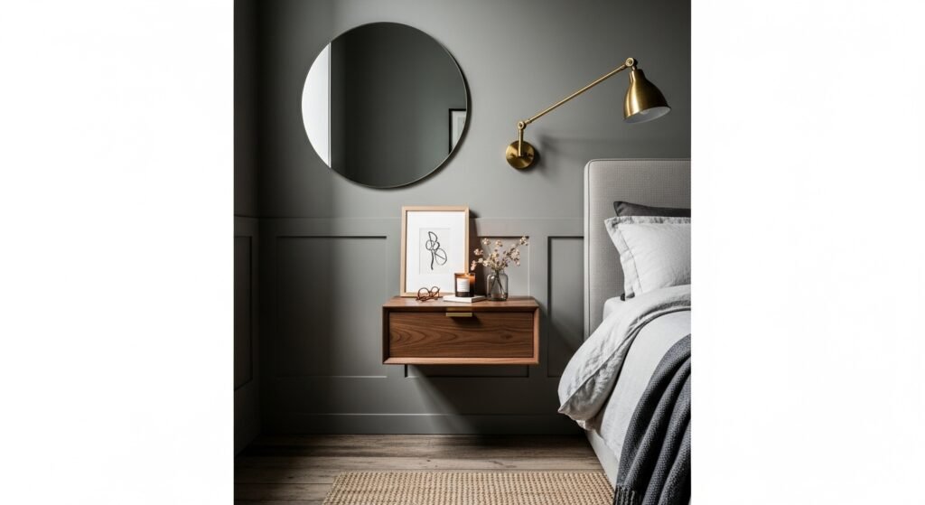 Leggy furniture can often make a small room feel cluttered and busy, but floating pieces solve this by keeping the floor visible. A wall-mounted desk or floating vanity provides a dedicated workspace without the bulky footprint of a traditional table. By leaving the floor underneath clear, the room feels much larger because the flooring continues uninterrupted to the wall. This setup also makes cleaning significantly easier and provides a spot to tuck away a small stool or ottoman when not in use. It is a sleek, modern solution that works perfectly in bedroom corners or as a compact hallway workstation, proving that you don’t need a massive desk to stay productive.