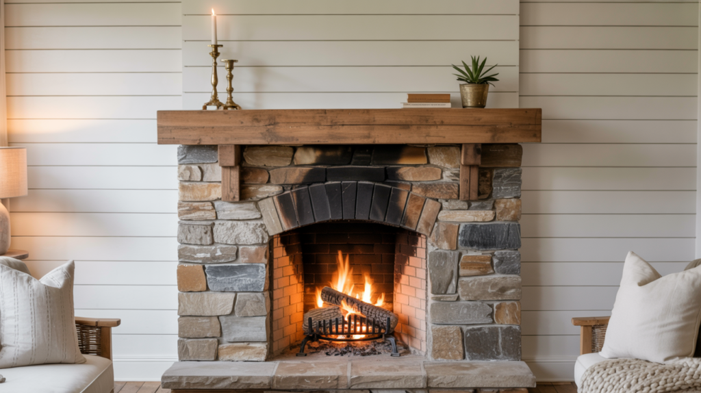 You get a layered look, and the shiplap keeps things light against all the bold stone. This was actually a friend’s pick when she did her own fireplace makeover.