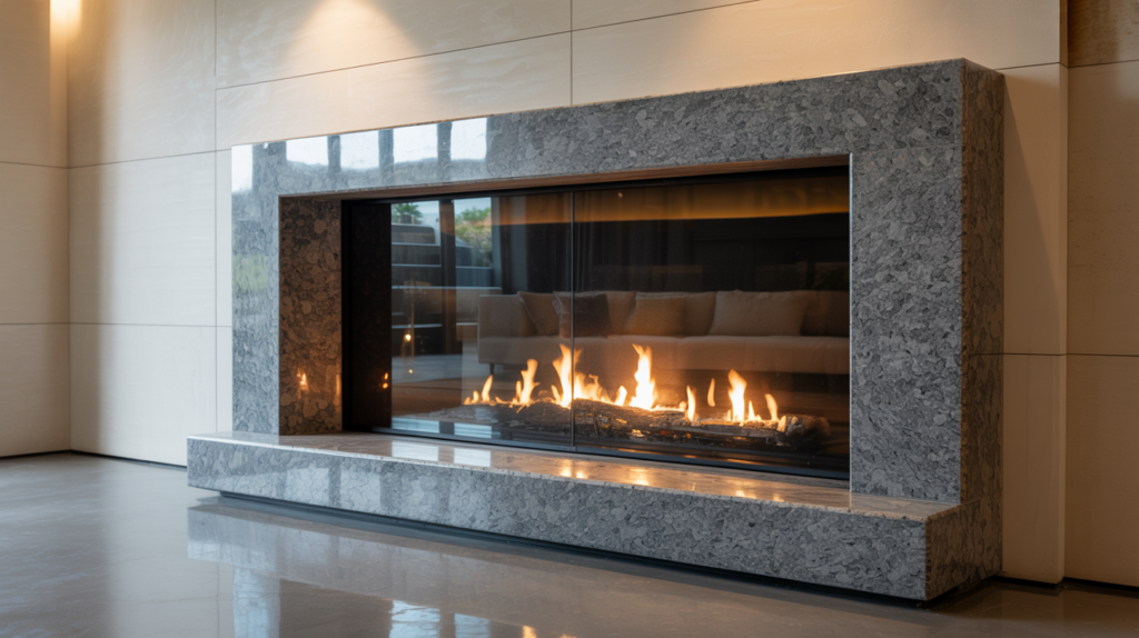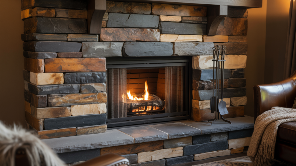 A stone fireplace paired with glass accents can create a modern and sleek look. Try using glass tiles or a glass surround to add some shine and reflectivity.