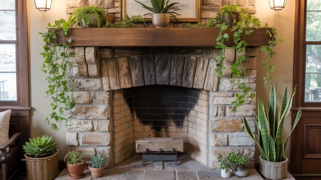 13. Add Some Greenery to Your Stone Fireplace