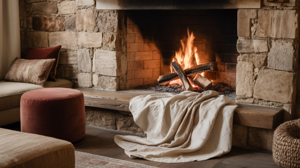 Mixing stone with fabric can add some interesting texture to a room. Try using a stone fireplace with a fabric-covered ottoman or a stone surround with a fabric-draped mantel.