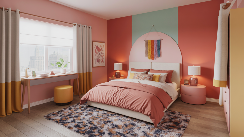 Add some personality and whimsy to your bedroom with a mix of colors and textures. Use a combination of bold and soft colors to create a sense of visual interest and depth. Consider adding some natural elements, like plants or flowers, to bring in a sense of warmth and coziness. Don’t forget to incorporate some soft and cozy textiles, like a throw blanket or a plush rug, to create a sense of warmth and relaxation.