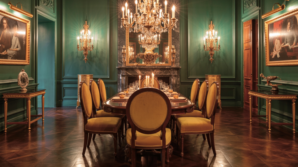 Metallic accents like gold, brass, or copper can add a touch of luxury to your moody dining room. Use them sparingly to avoid overwhelming the space.