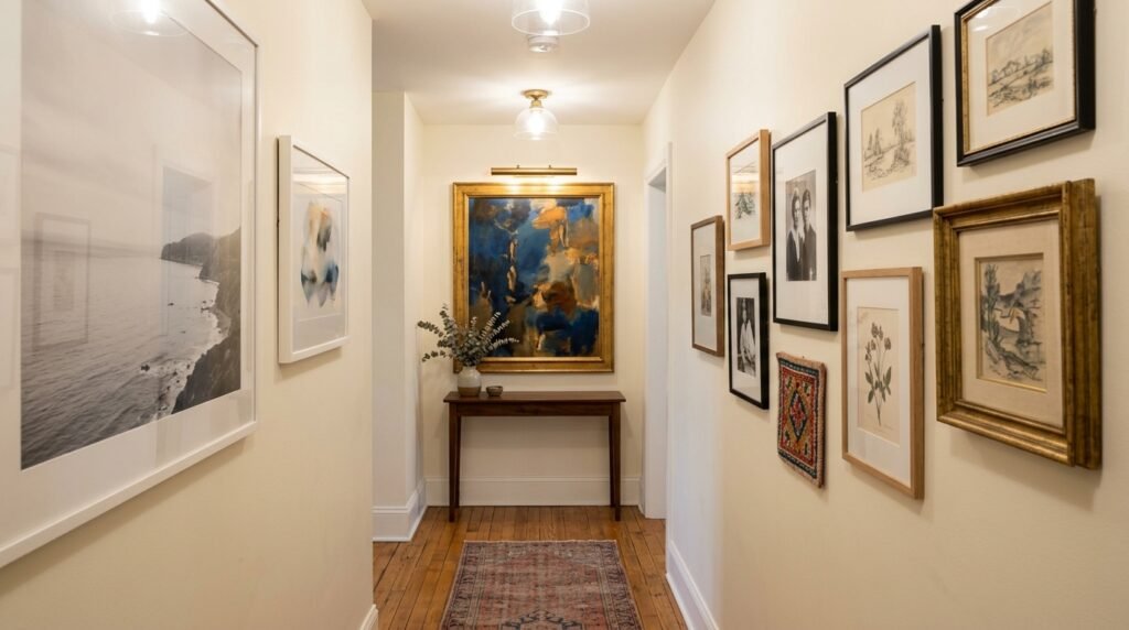 Art has an incredible power to transform any space, and tiny hallways are no exception. Strategic art placement is one of the most effective tiny hallway ideas for diverting attention from the size of the space itself and drawing the eye to something captivating.