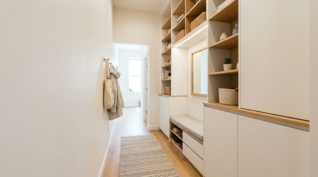 In a tiny hallway, every inch counts, and this is where clever built-in storage solutions become indispensable tiny hallway ideas. Instead of battling with bulky freestanding furniture, built-ins offer seamless, custom-tailored storage that maximizes vertical space and minimizes visual clutter.