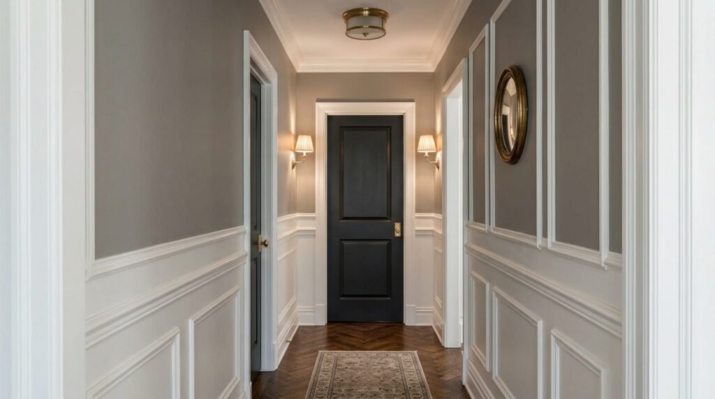 Wall moldings are a timeless design element that can dramatically elevate tiny hallway ideas, adding a layer of architectural interest and perceived grandeur without consuming any floor space. Often associated with larger, more traditional homes, these decorative trims can actually work wonders in compact corridors.