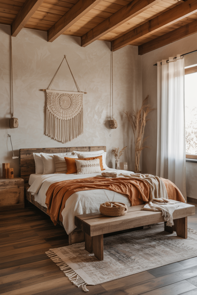 11. Rustic Boho Bedroom with Wooden Accents