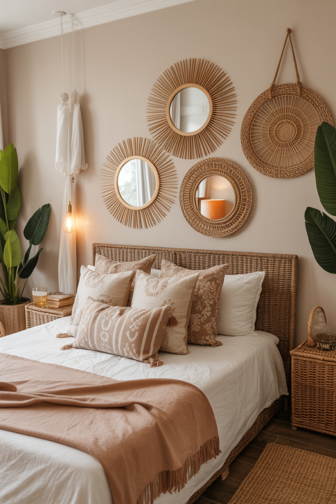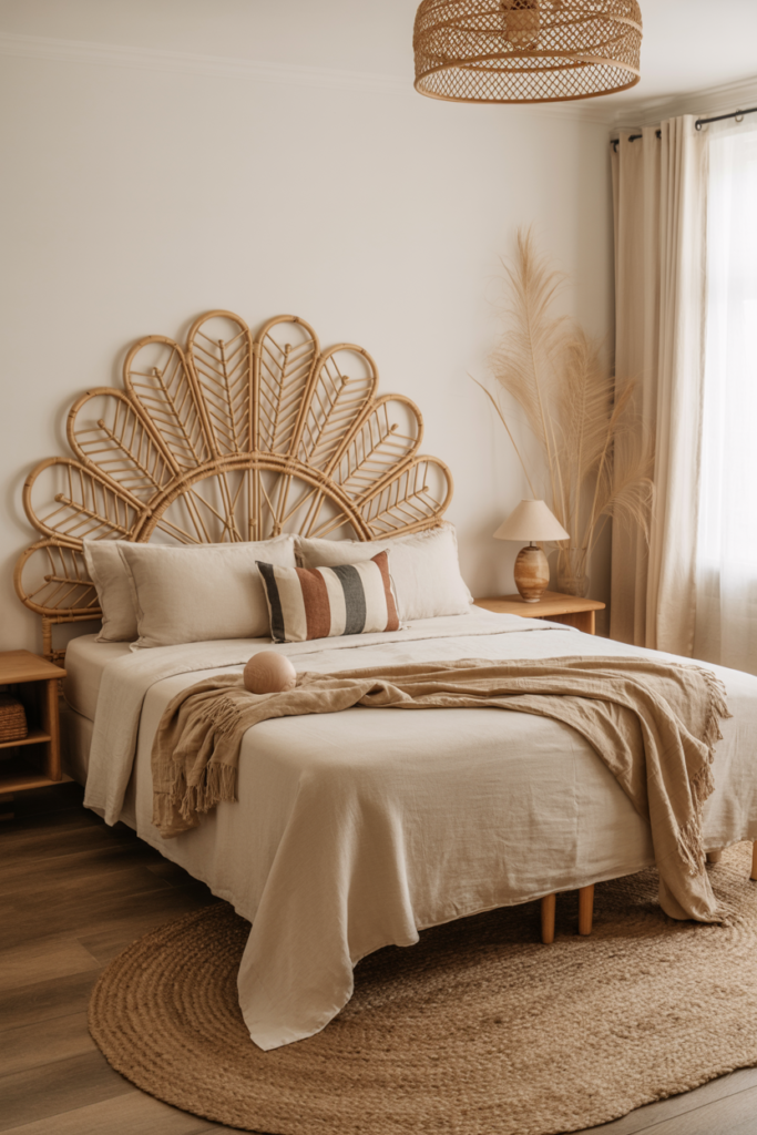 9. Boho Bedroom with a Statement Rattan Headboard