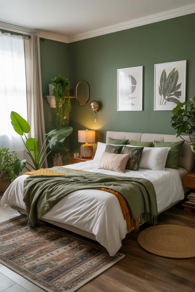 22. Green Boho Bedrooms with Lush Accents