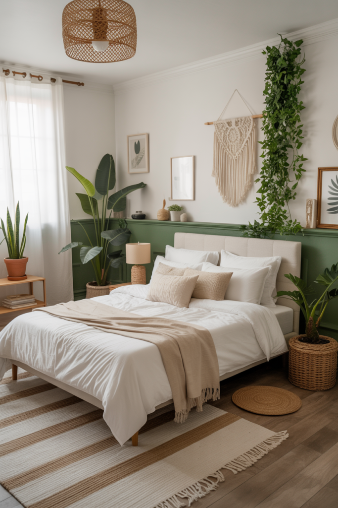 5. Green and White Boho Bedroom Aesthetic