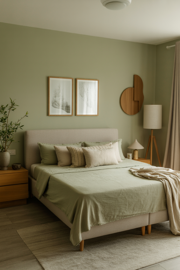 Soft earth tones like beige, terracotta, and olive can create a grounding and calm atmosphere. Use them as your base, then build on them with natural textures like linen bedding, jute rugs, or a worn wood bench.