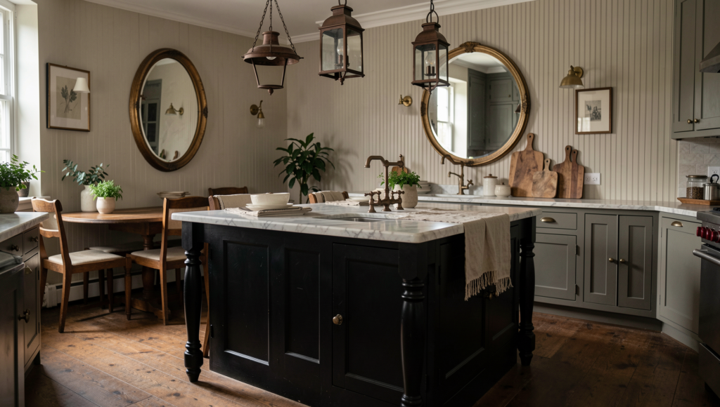 Instead of a standard boxy island, think of a piece you’d find in a grand old dining room: paneled legs, a thicker top edge, maybe even a skirt detail. This works because it visually breaks up the “all-cabinetry” effect and adds a human scale—warm, grounding, and quietly luxurious.