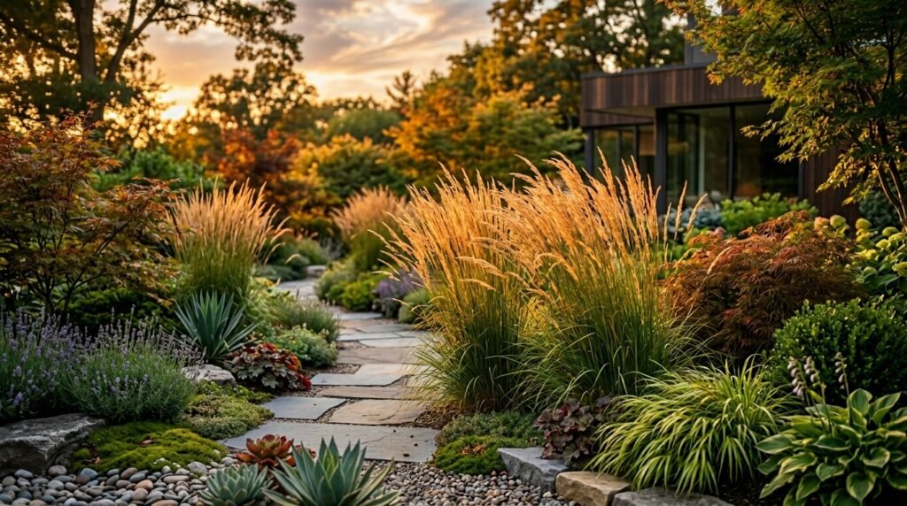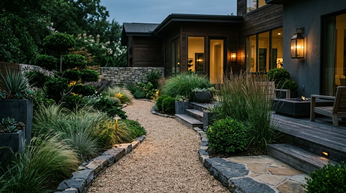 That is where easy landscaping ideas for low maintenance homes become transformative. Imagine sculptural grasses swaying in the breeze, gravel pathways glowing in soft evening light, and thoughtfully layered greenery that thrives with minimal effort. Like a well-curated interior, a low-maintenance garden relies on composition, texture, and strategic design rather than constant upkeep.