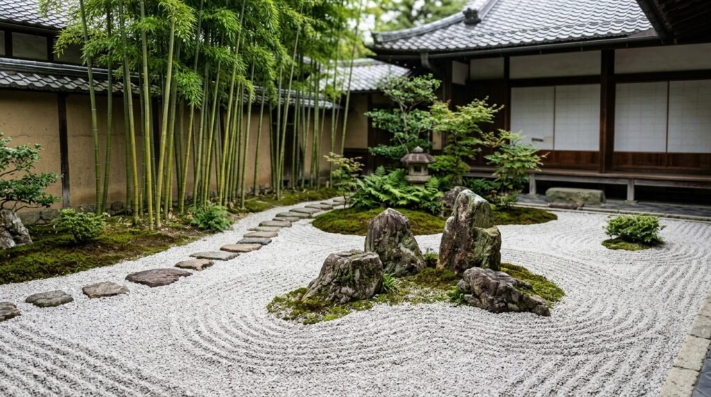Zen gravel courtyard landscaping idea for low maintenance homes