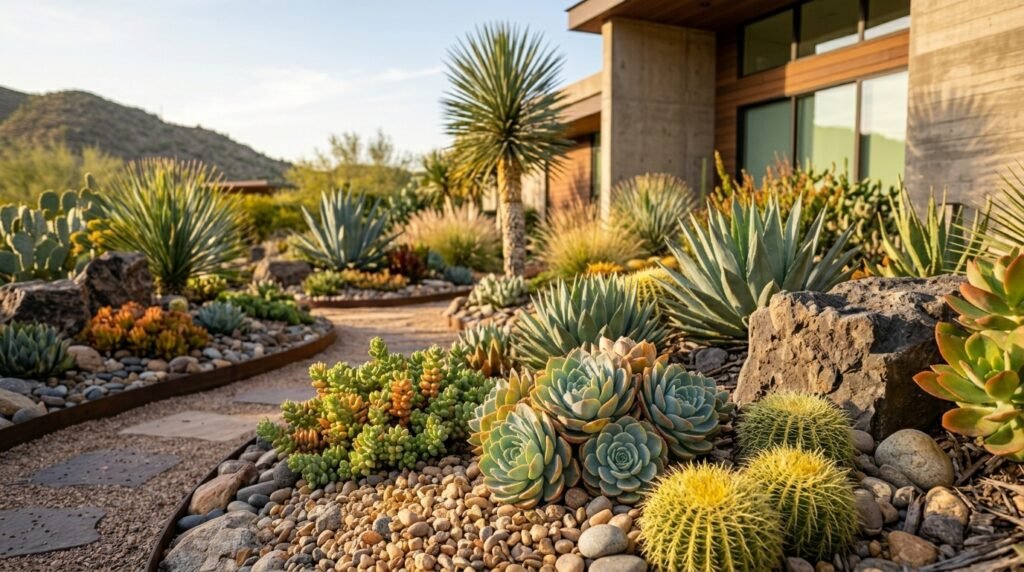 Gravel paths, native plants, sculptural stones, and drought-friendly greenery allow homeowners to enjoy lush outdoor living without endless upkeep. Much like a well-curated interior, a successful landscape relies on texture, balance, and timeless materials that grow more beautiful with time.
