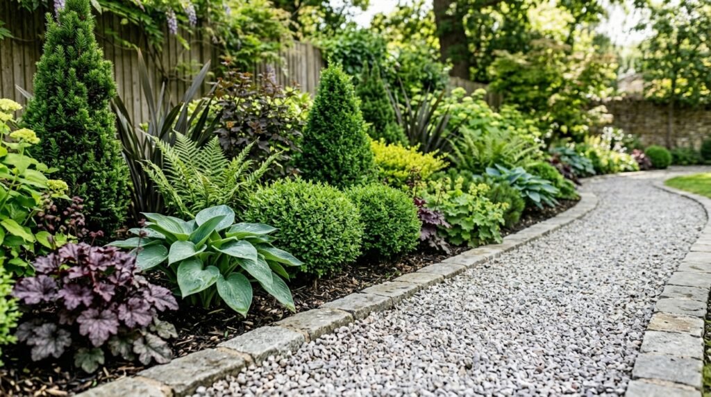 Designers often layer multiple gravel tones, such as pale limestone and charcoal slate, to introduce subtle contrast. Clean-lined edging made from steel or stone keeps beds visually crisp while preventing spread.