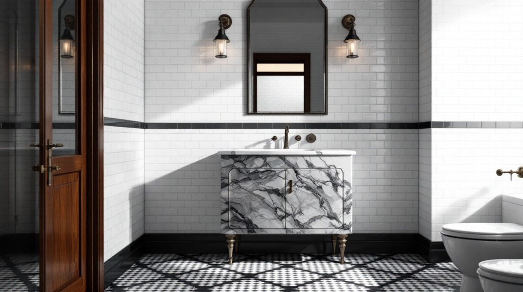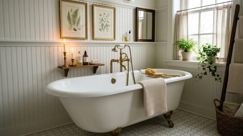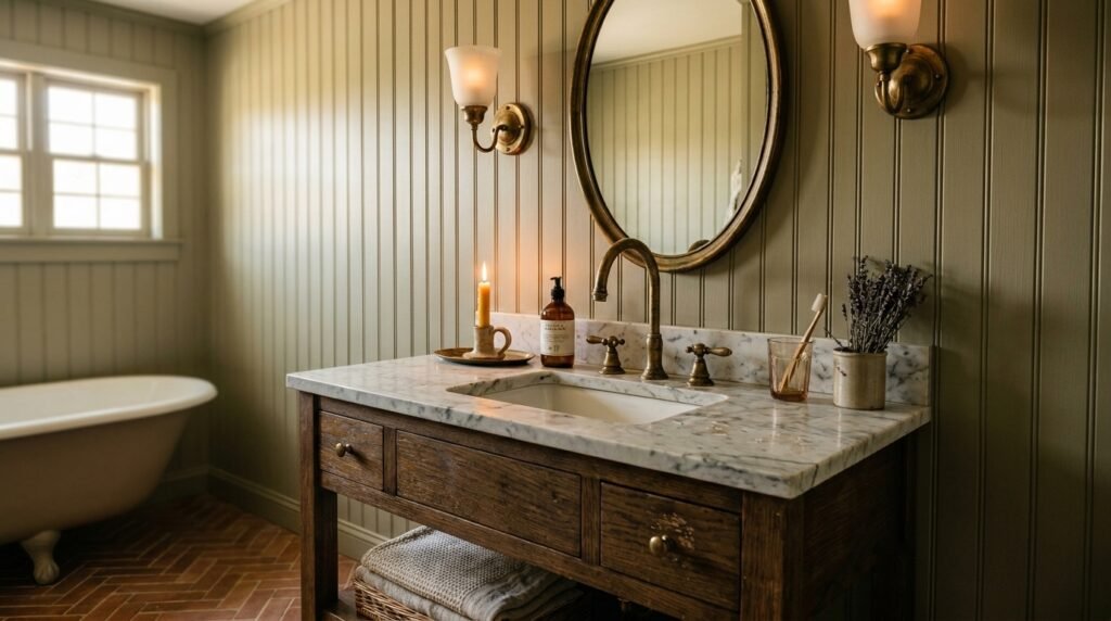 Think of the bathroom as a jewel box of the home. Rich textures like beadboard paneling, veined stone, and vintage-inspired fixtures transform an everyday routine into a ritual. The most successful designs balance classic architecture with modern practicality—pairing Victorian elegance with contemporary comfort.