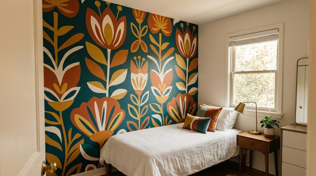 A bold, large-scale pattern on one wall can add personality and depth without overwhelming the space. Choose a design that expresses your personal style.