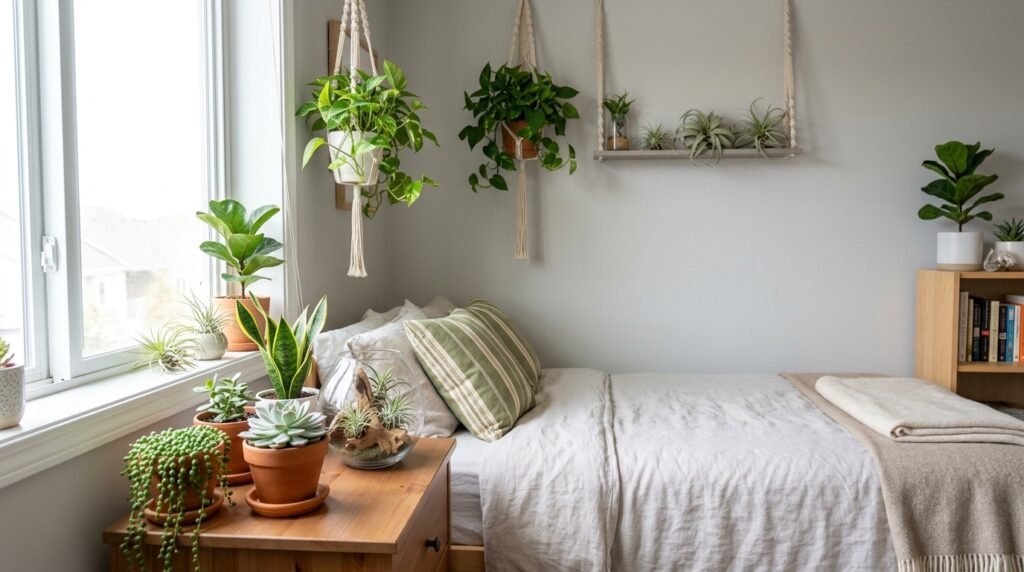 Adding plants to your small bedroom can purify the air, improve the aesthetic, and even help with sleep. Choose low-maintenance plants like succulents or air plants.