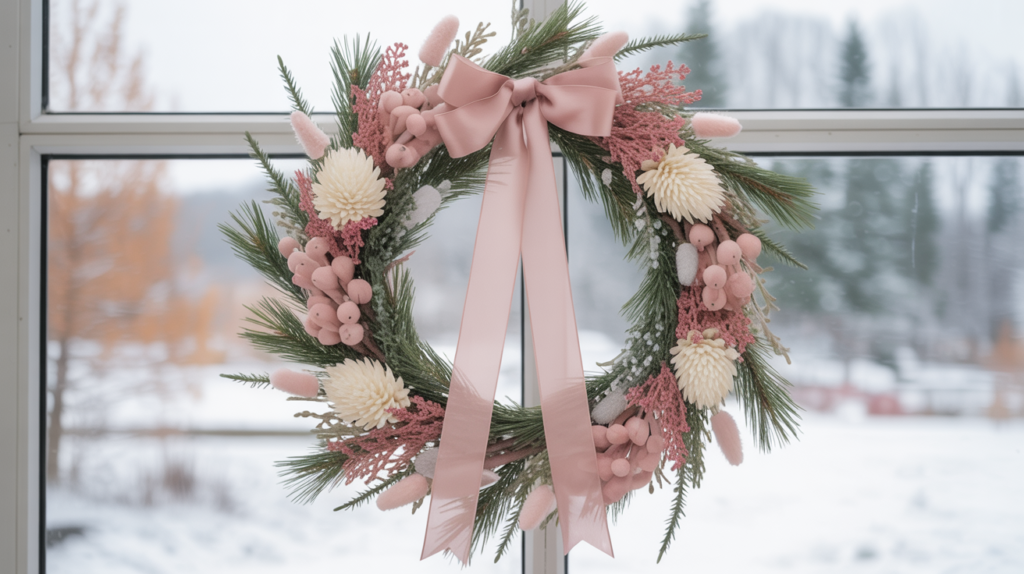 8. Winter Wreath with a Pop of Pink