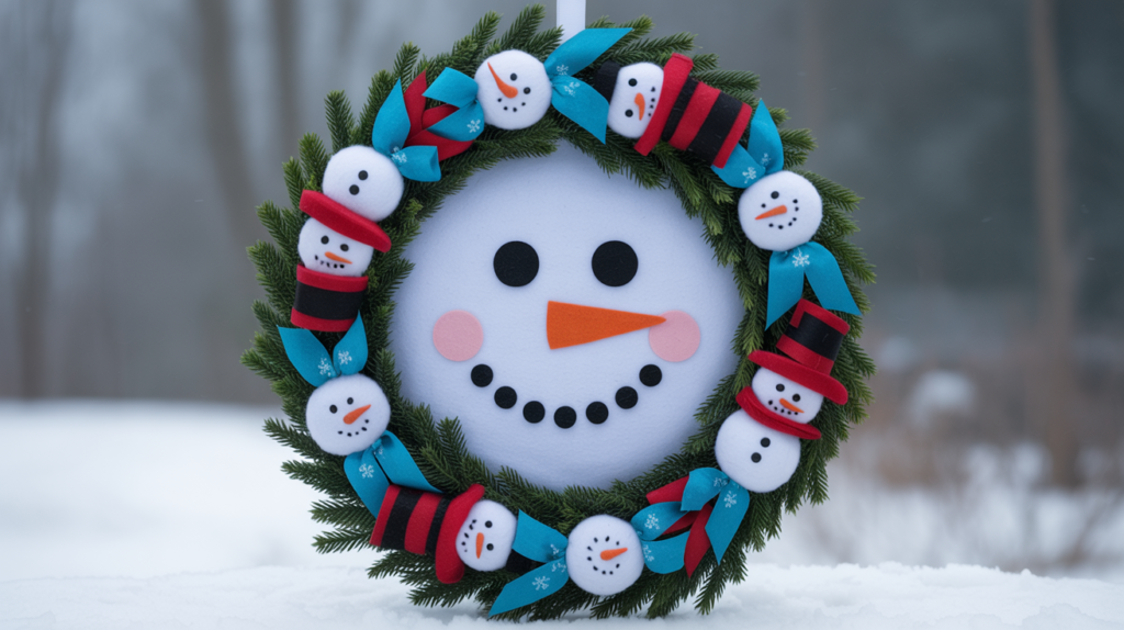 15. Snowman-Themed Winter Wreath