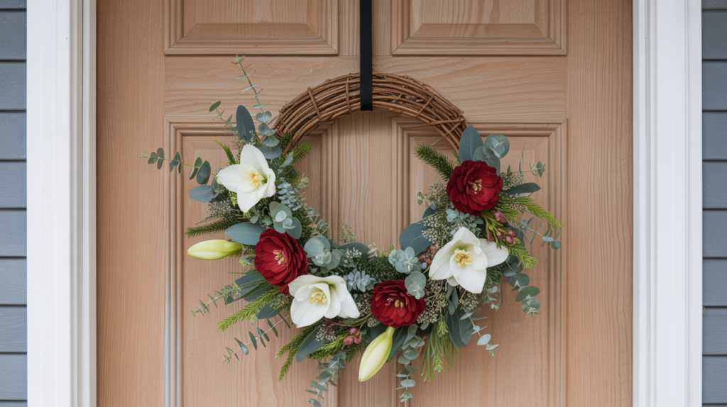 Fresh flowers can add a pop of color and fragrance to your winter wreath. Choose seasonal flowers like eucalyptus, holly, or amaryllis for a beautiful and unique look.