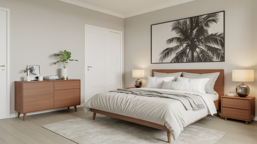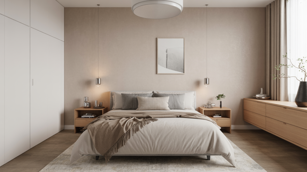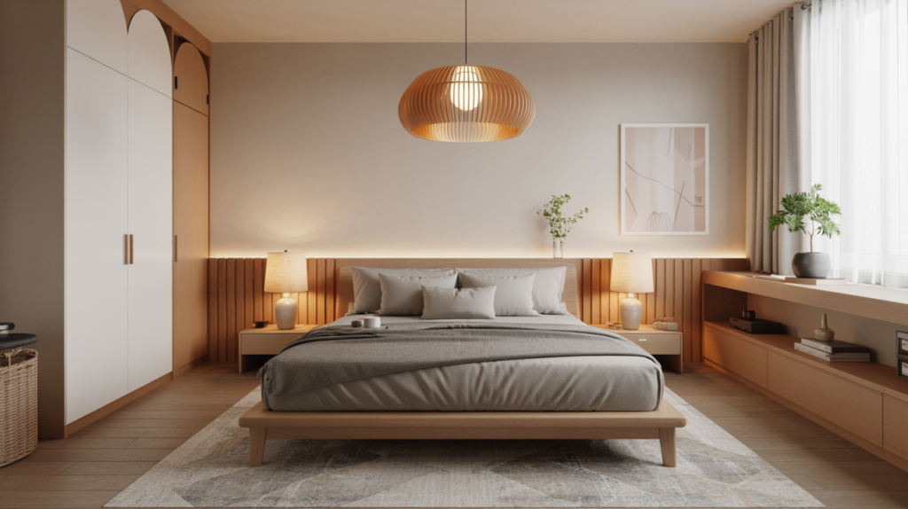 Combine Japanese simplicity with Scandinavian warmth, and you get yourself a Japandi-style bedroom. Low beds, soft lighting, and a few well-chosen decor pieces can create a calm, intentional setting.