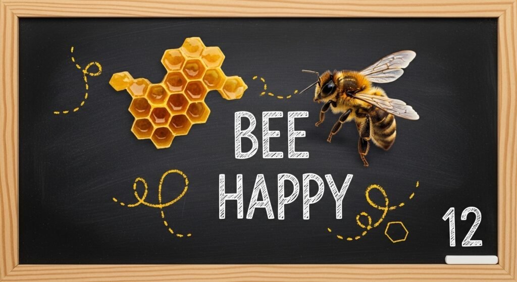 11. “Bee Happy” with Bee and Honeycomb Patterns