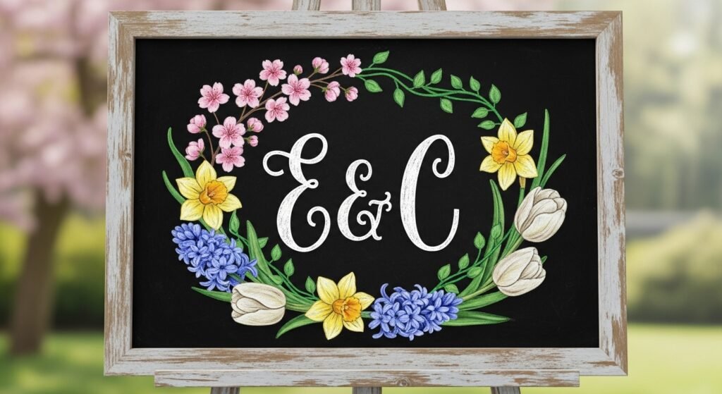 Combine spring florals with monogrammed initials for a personalized touch. Use a mix of bright and pastel colors to make it pop and add a beautiful design to your chalkboard.