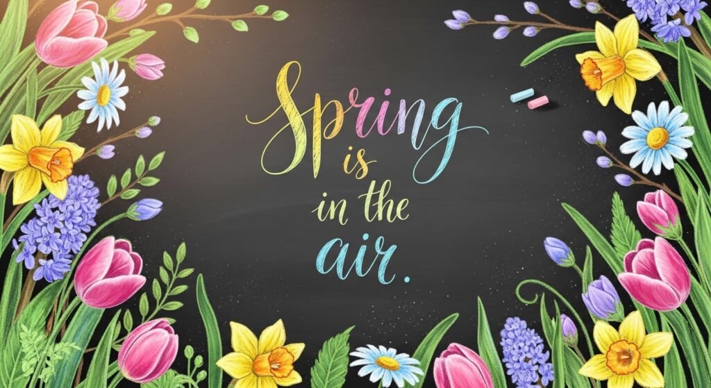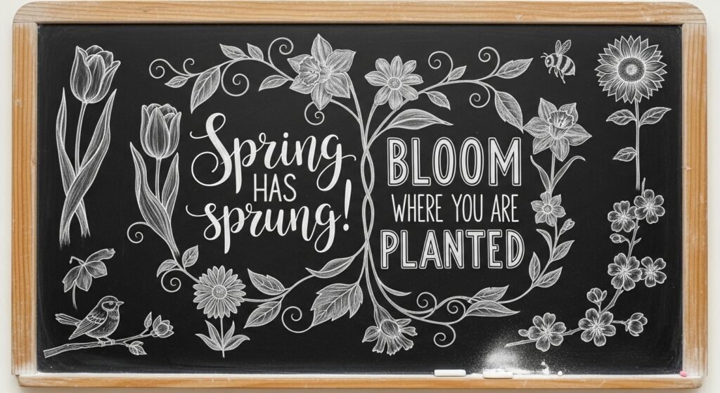 24. Spring Chalkboard with a Mix of Quotes and Illustrations