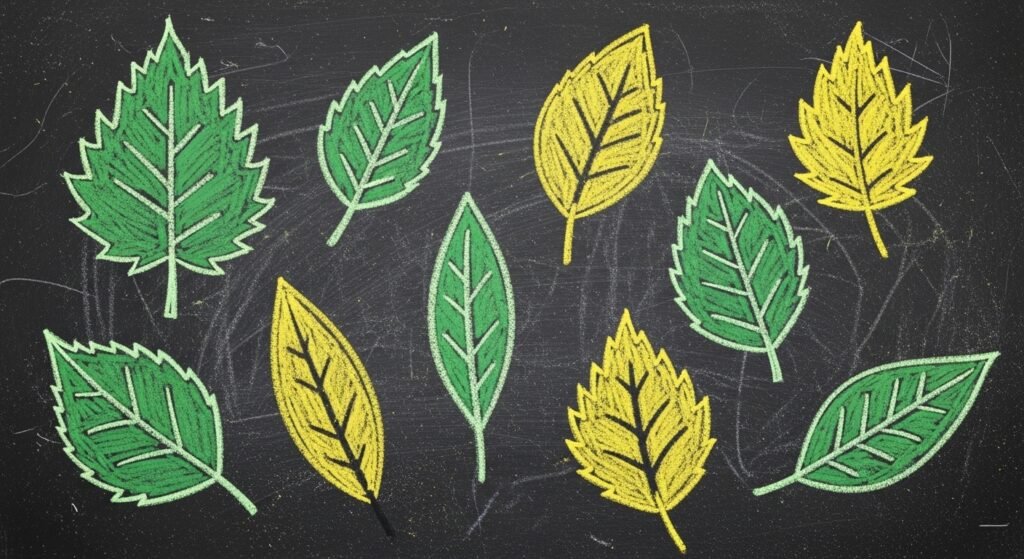 Draw a simple spring leaf pattern using different shapes and sizes. Use green and yellow chalks to create a natural look and add a touch of spring to your decor.