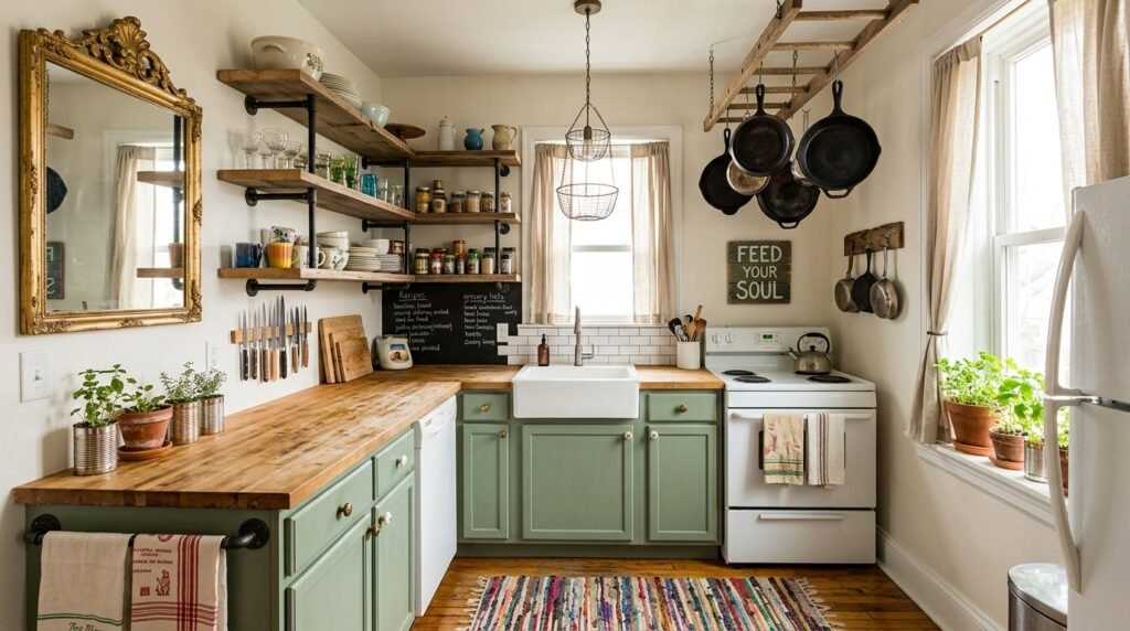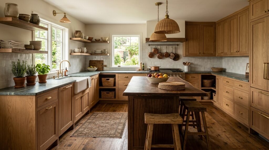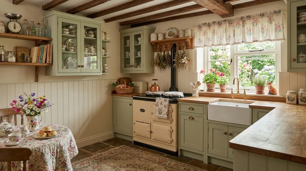 A storybook kitchen where every detail is filled with charm. The Cottagecore kitchen is a romantic, nostalgic dream. It’s a rejection of sleek modernism in favor of cozy, handmade, and slightly imperfect charm.