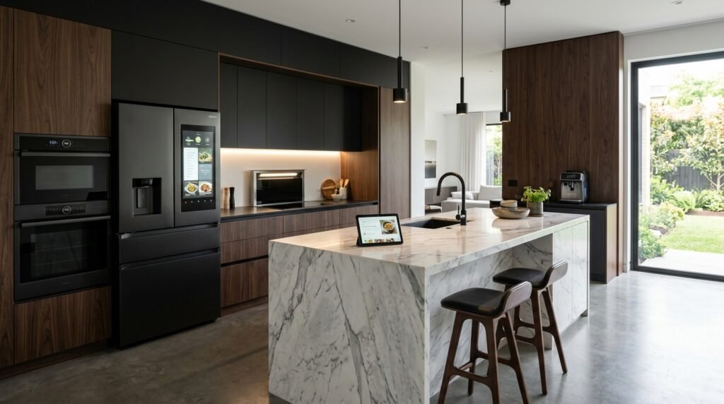 Your kitchen is now smarter than your phone. Welcome home. Welcome to the kitchen of tomorrow, today. The future-forward smart kitchen seamlessly integrates technology to make life easier, more efficient, and more enjoyable.