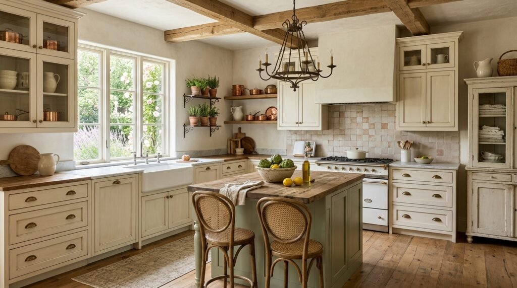 Rustic charm and refined elegance come together in perfect harmony. A French country kitchen is a masterclass in warmth and sophistication, blending soft colors, natural textures, and classic designs.