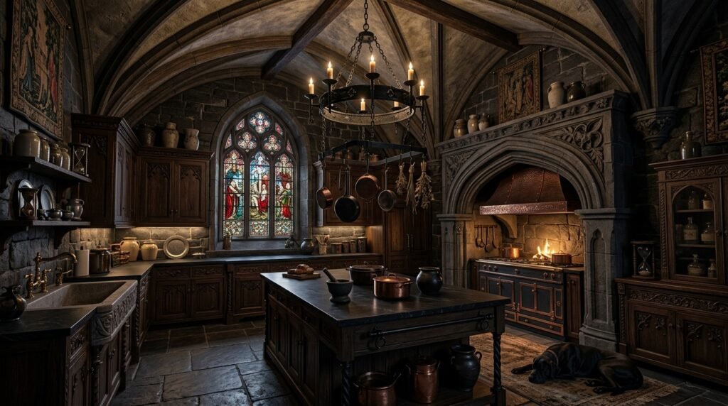 Dramatic, mysterious, and unforgettable. A Gothic kitchen is a space that makes a statement, with its dark colors, intricate details, and bold architectural features.