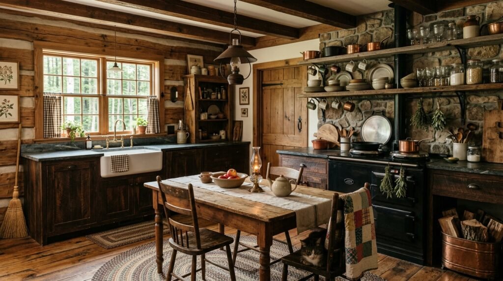 Cozy, inviting, and full of character. A rustic cabin kitchen is a space that feels like a warm hug, with its natural materials, cozy textures, and classic designs.