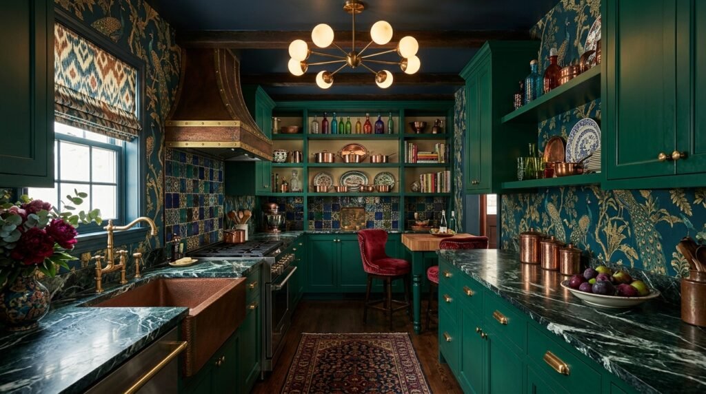 More is more, and darling, it is magnificent. For those who believe beige is a swear word, the moody maximalist kitchen is a thrilling symphony of color, pattern, and texture.