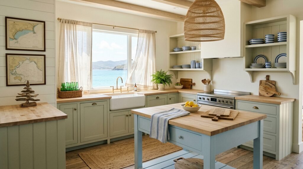 Every day feels like a vacation in this kitchen. You can almost smell the salt in the air. A coastal kitchen is a deep breath of fresh air, designed to evoke the relaxed, easygoing spirit of life by the sea.