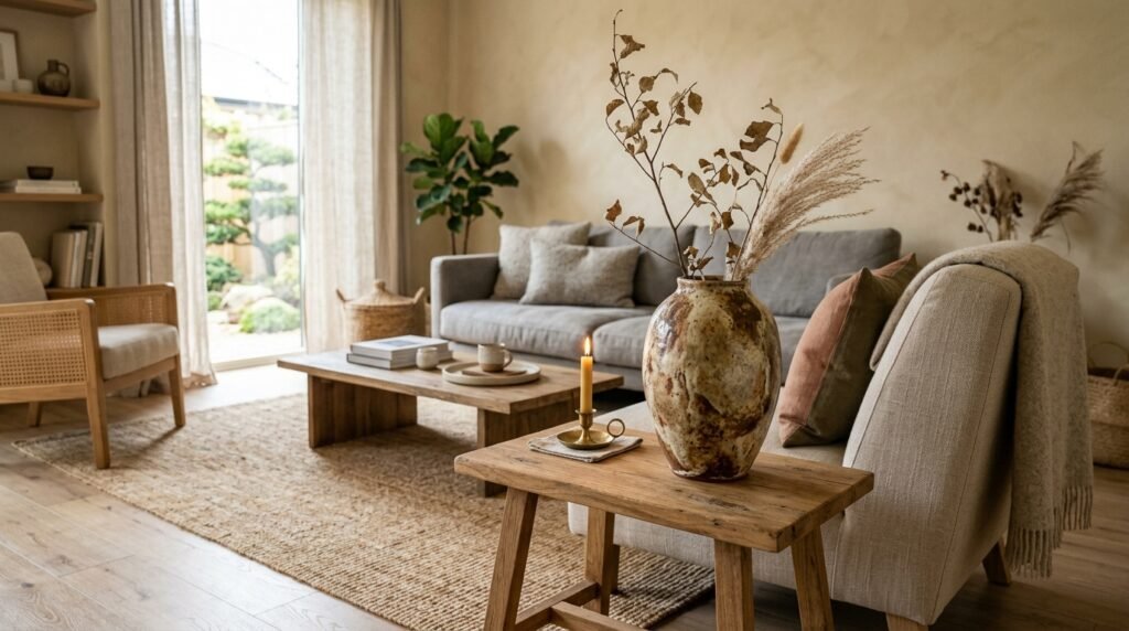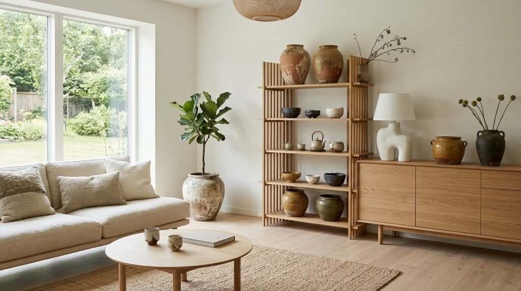 In a minimalist space, every object carries more weight. Japandi design champions the idea of ‘fewer, better things,’ particularly in the use of ceramics and pottery. Select a few high-impact, artisanal pieces that can stand on their own, adding a touch of wabi-sabi imperfection and human touch to your room.
