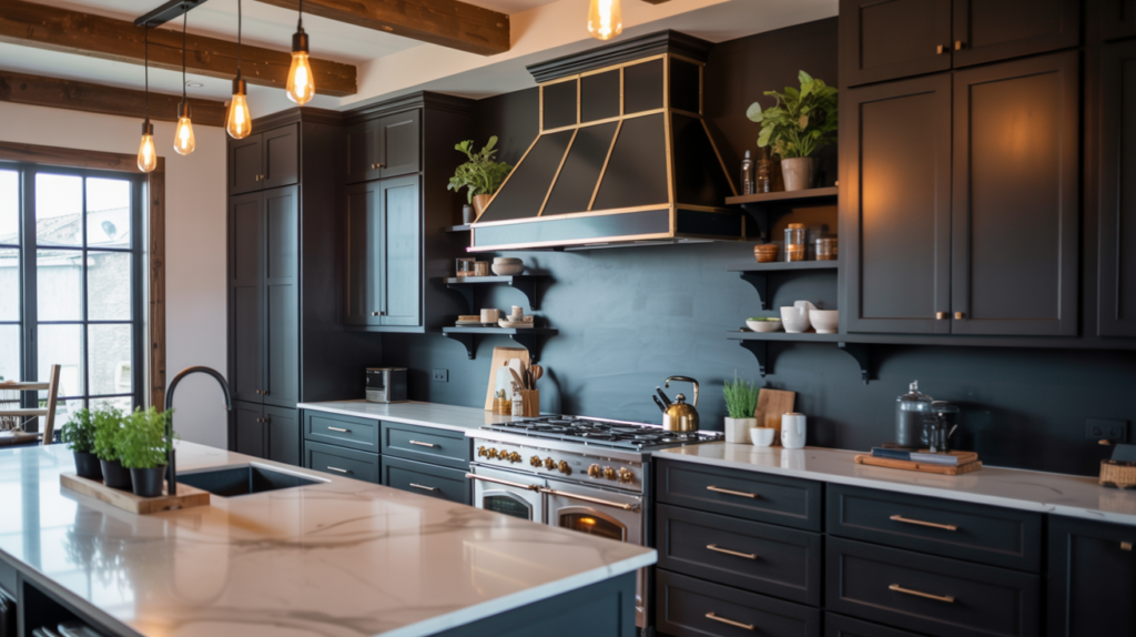 Plants add life to a moody kitchen, softening dark tones and making the space feel inviting. Low-maintenance options like succulents or herbs are practical and beautiful choices.