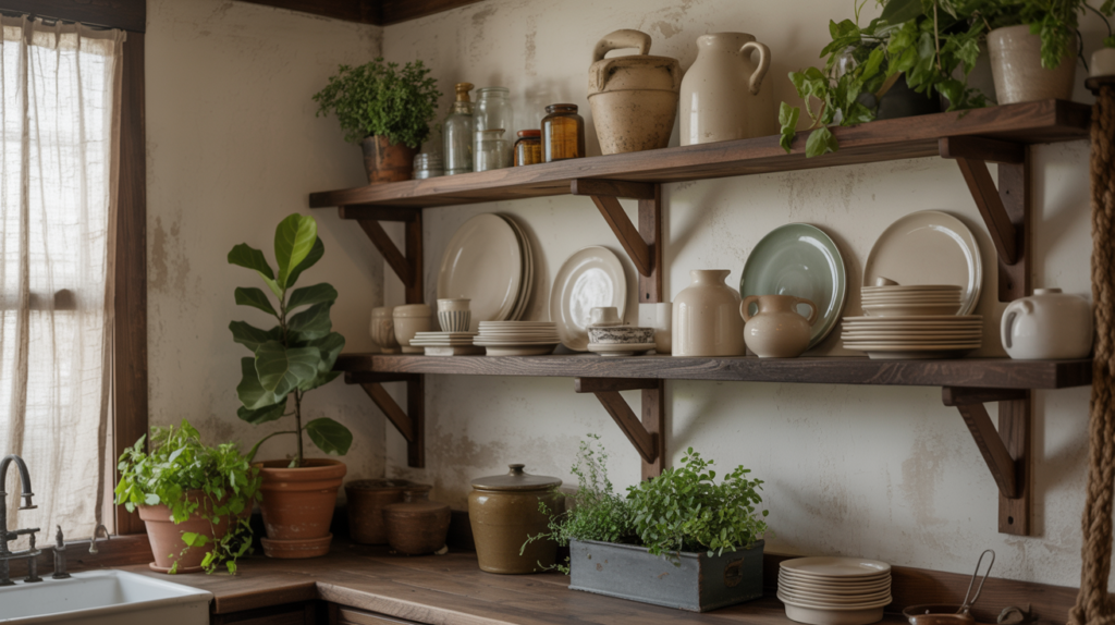 9. Contrast with Dark Wood Open Shelving