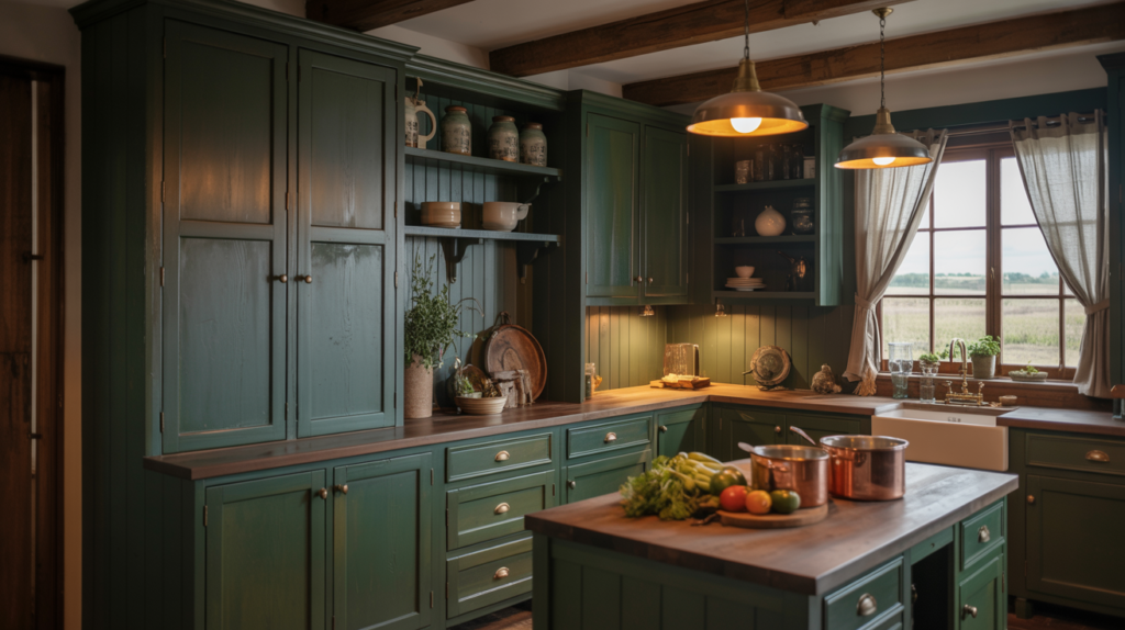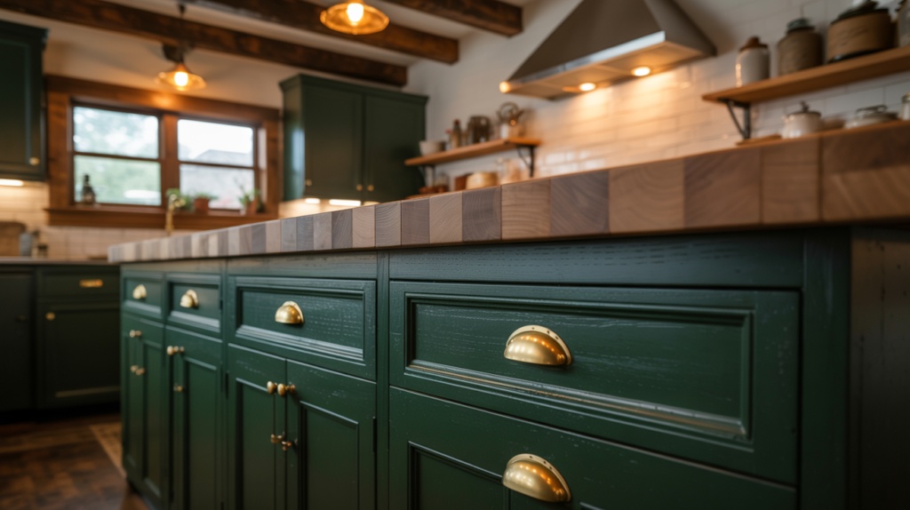 1. Nature-Inspired Moody Vibe with Dark Green Cabinets