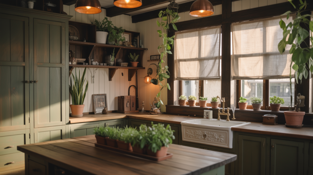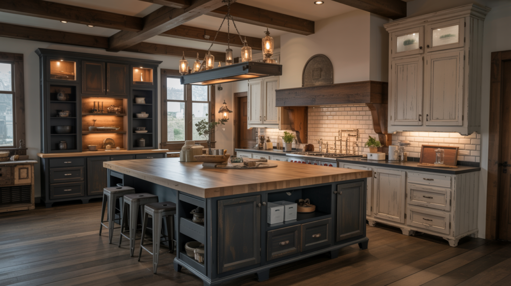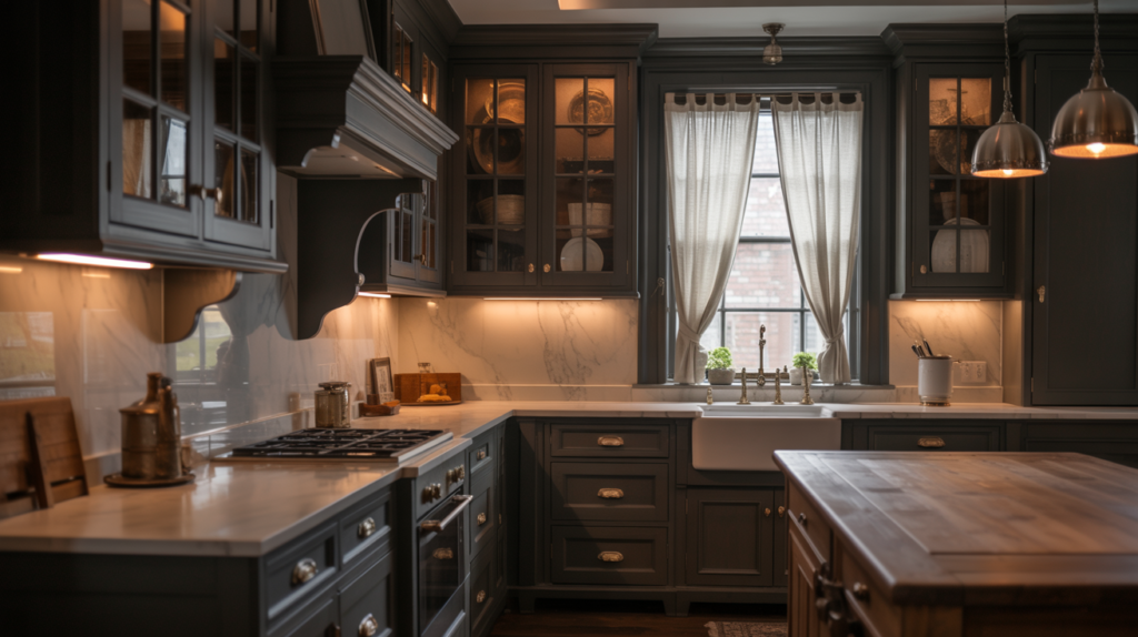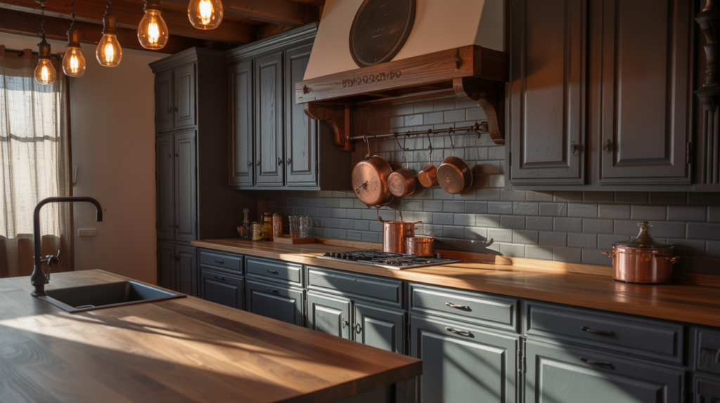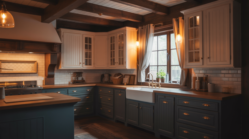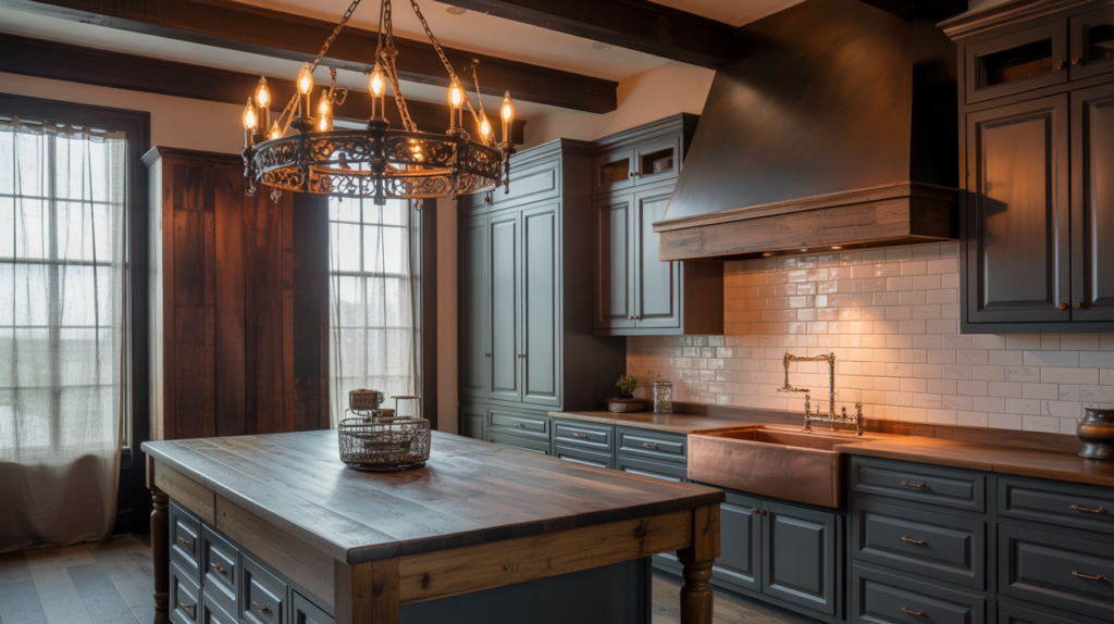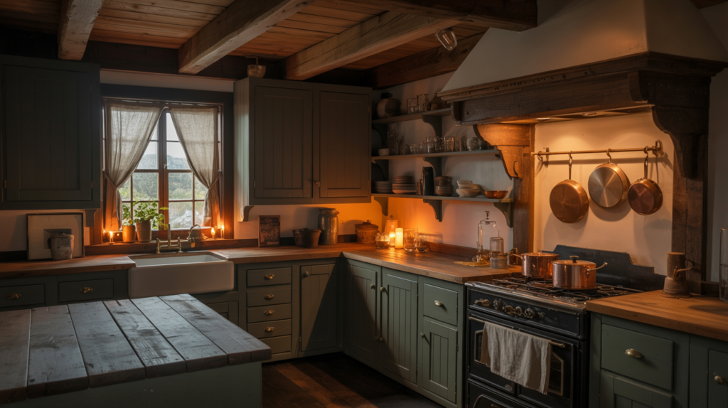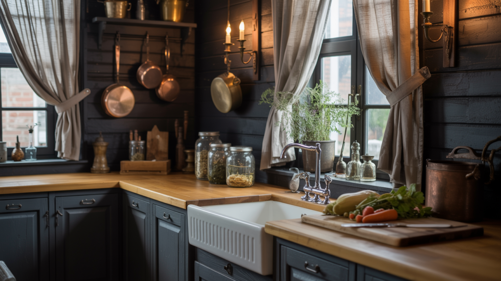 A moody farmhouse kitchen is all about balance, combining rich colors, natural textures, and thoughtful lighting to create a cozy yet dramatic space. Don’t be afraid to mix materials and experiment with bold shades to make your kitchen truly unique.