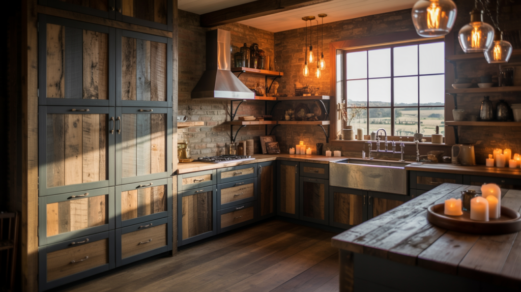 6. Rustic Charm with Reclaimed Wood Cabinets