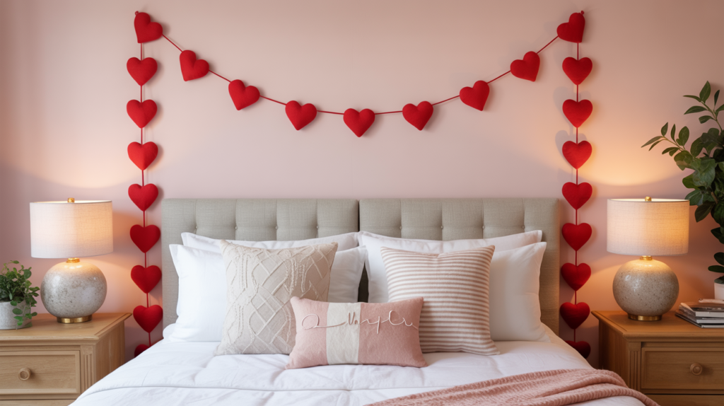 Felt heart garlands might be the happiest Valentine’s Day detail you’ll ever hang. Draping them in the living room or over a headboard just says “love lives here.”